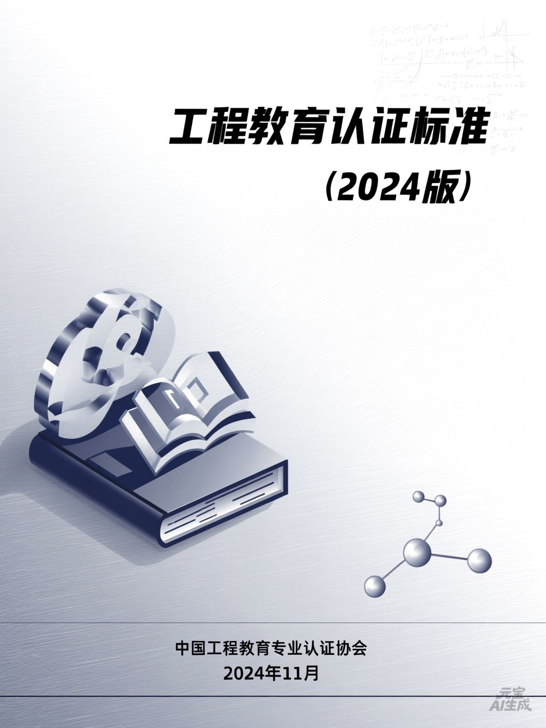 工程教育认证标准(2024 版) 中国工程教育专业认证协会2024 年 11 月 1 范围本文件规定了工程教育认证的通用标准和各专......
